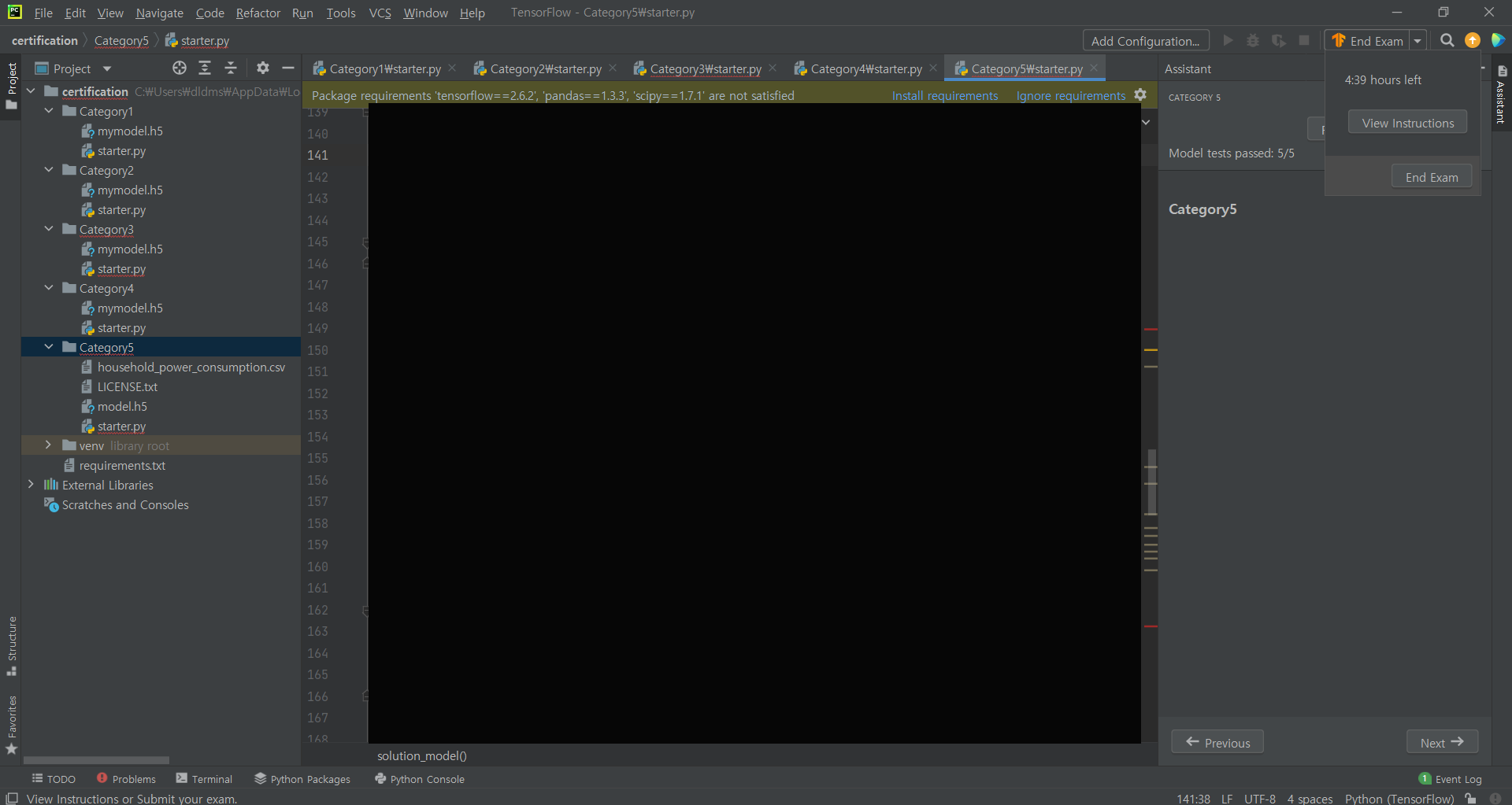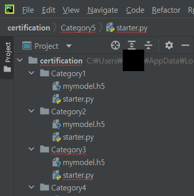 파이참에서 시험을 볼 때 왼쪽 위에 certification 폴더 경로가 보인다.