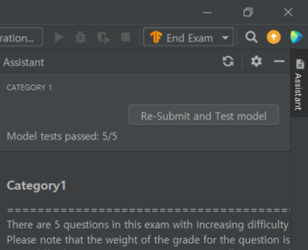 submit and test를 해서 5/5가 여러 번 나오면 End Exam을 눌러 제출하면 된다.