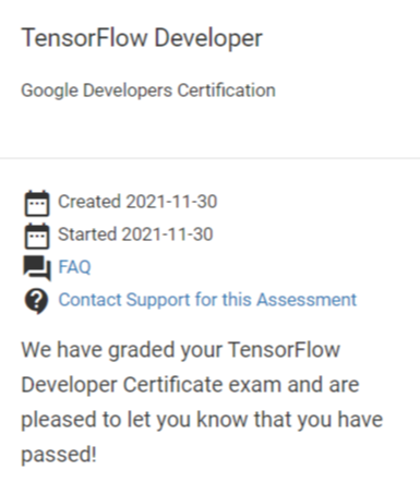 방금 텐서플로우 자격증 시험에 합격하고 바로 쓰는 (따끈따끈한) 후기이다.