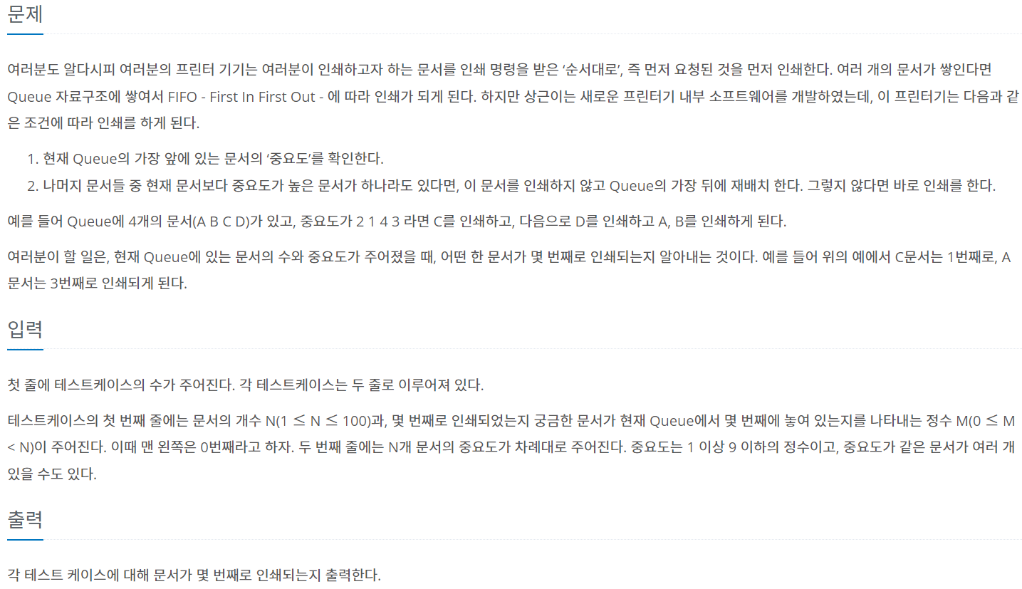 - 백준 링크 https://www.acmicpc.net/problem/1966