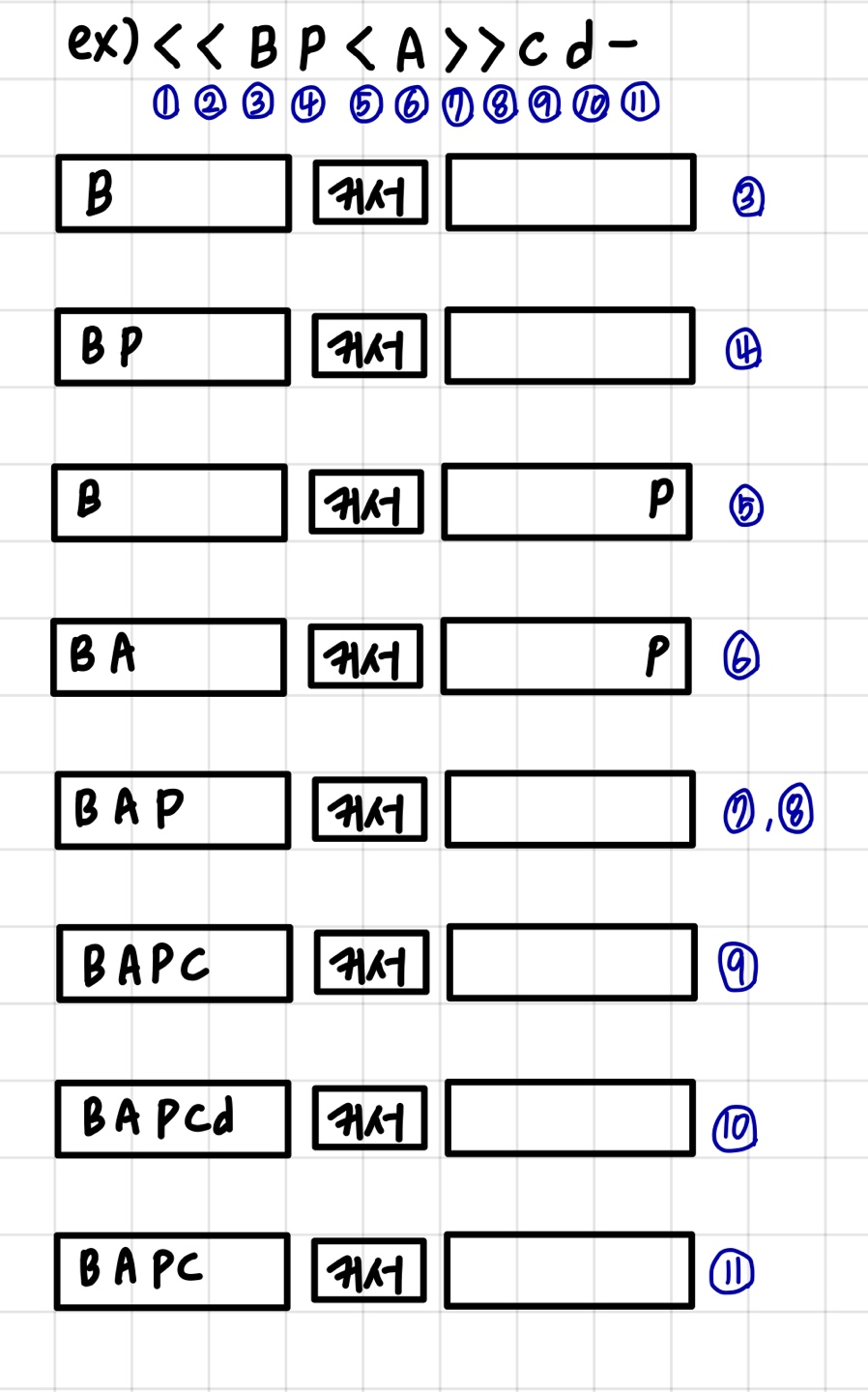 [ 왼쪽 스택 | 커서 | 왼쪽 스택 ]