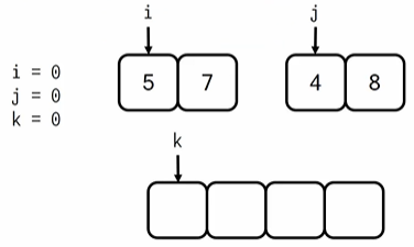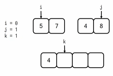 - i,j가 가리키는 원소 중 작은 원소가 k가 가리키는 곳에 들어간다.