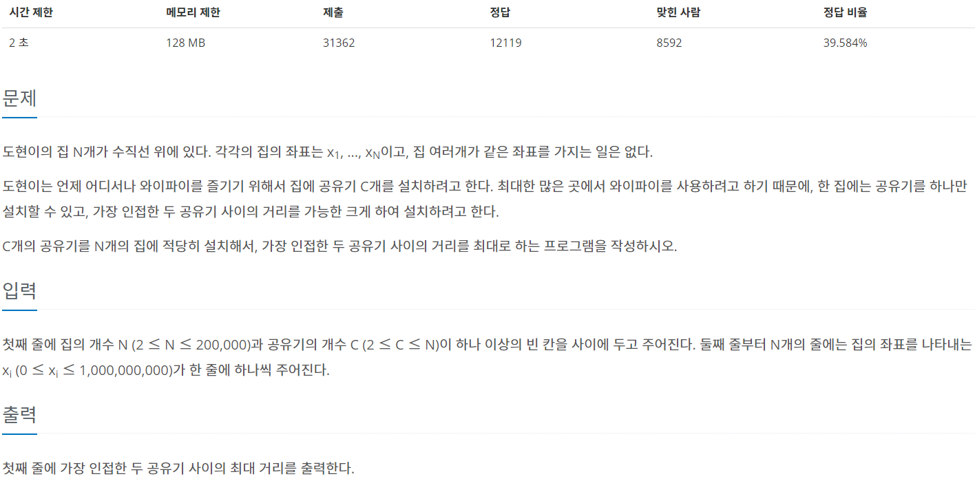 문제 출처 : https://www.acmicpc.net/problem/2110
