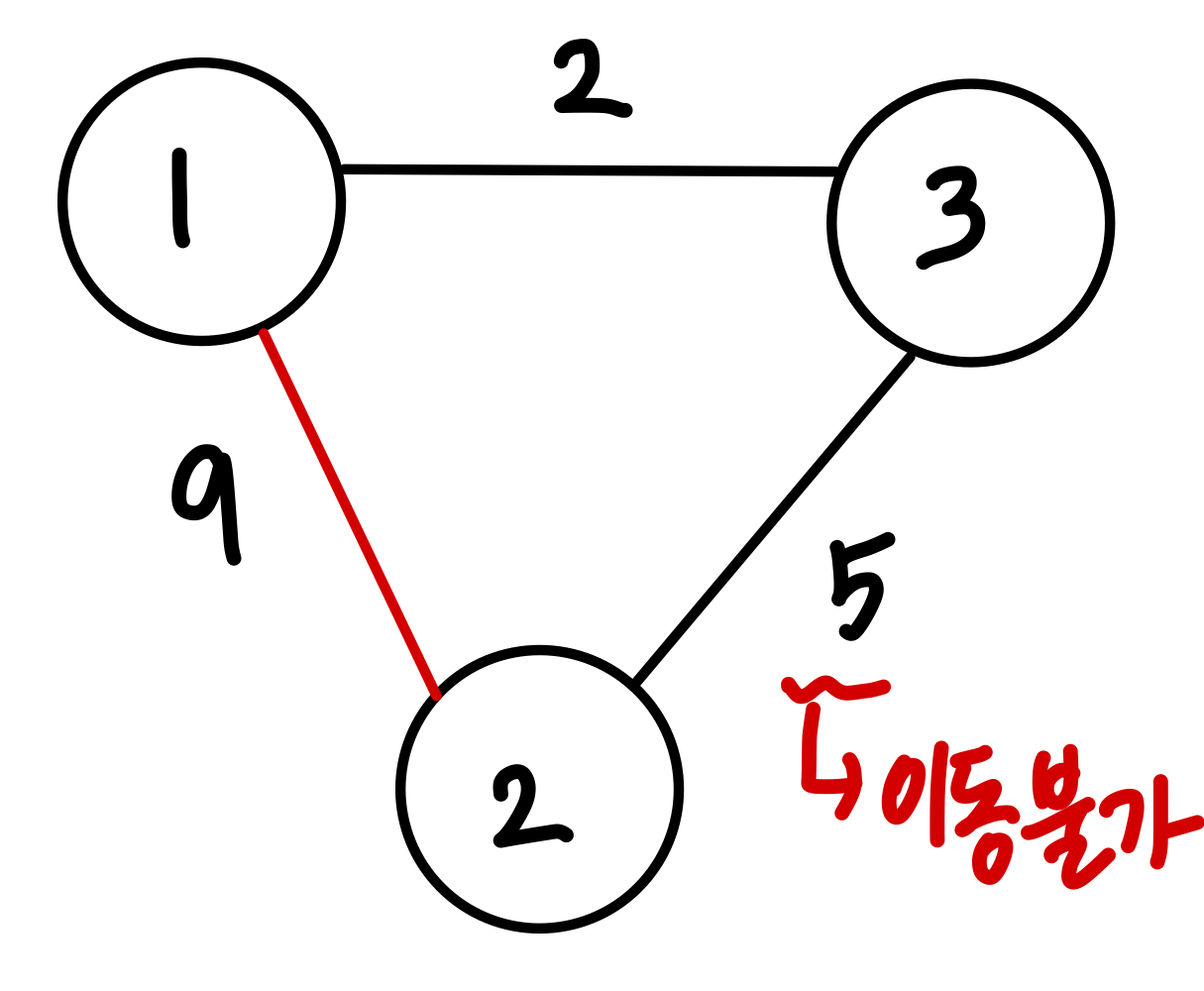 ex. 노드 1~3, (1,2) : 9, (2,3) : 5, (1,3) : 2