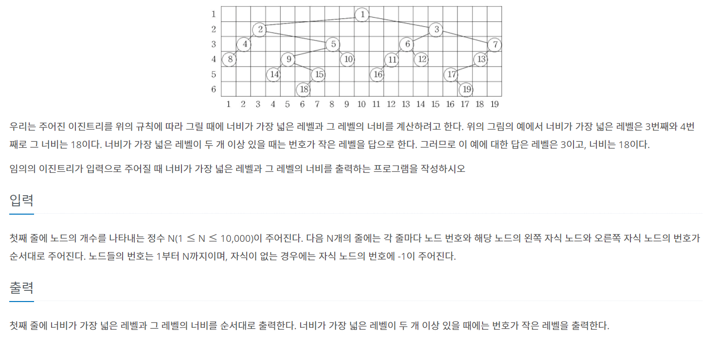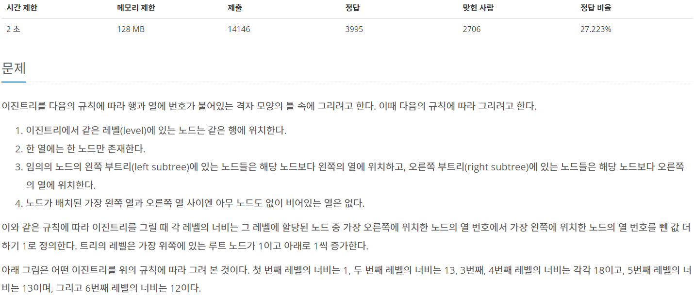 문제 출처 : https://www.acmicpc.net/problem/2250